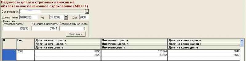 У нас есть реальная задолженность перед ПФ. Если мы заполняем только 1 строчкой и ставим там 2008 год тоесть примерно вот так(пример):