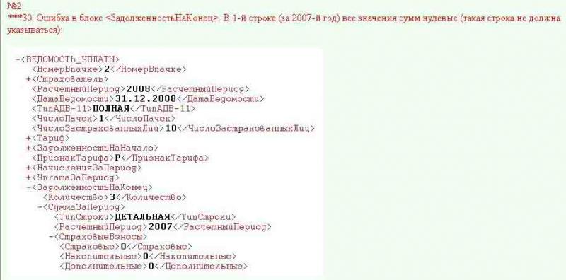 ***30: Ошибка в блоке <ЗадолженностьНаНачало>. В 2-й строке (за 2008-й год) все значения сумм нулевые (такая строка не должна указываться):
