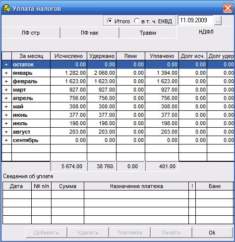 Добрый день! У меня та же проблема - в нижней части формы уплаты налогов по НДФЛ появляются огромные суммы (как к уплате, так и к возврату). И еще новая ошибка (кажется, ее здесь не описывали еще) - неправильный расчет НДФЛ (зарплата начислена 25000, а НДФЛ почему-то 1300 рублей? Хотя с учетом всех вычетов должно быть 2860. До обновления 10.09 все было хорошо