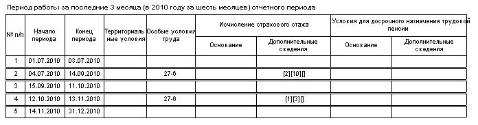 Доброго времени суток!Сообщение от Denis P. Посмотреть сообщениеВ разделе "Особые условия труда" ввели Код 27-6. В разделе Дополнительные сведения ввели второй и первый параметр (у кого больше месяца). В результате в печатной форме заполнились колонки "Особые условия труда" и "Дополнительные сведения (Исчисления страхового стажа).