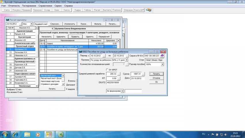 В закладке Кадры заполнила вручную данные о зарплате за 2007и 2008годы, программа рассчитала среднедневной заработок все правильно, но на печать из закдадки Кадры выводится справка о расчете пособия до 1,5 лет.