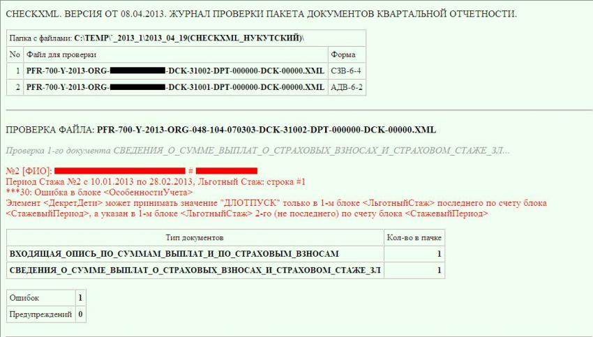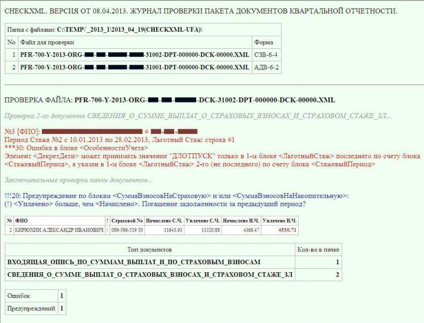 Есть ситуация. Льготник ездил на учебу и за это получал деньги, потому имеет "разрыв" в льготном стаже и суммы начисленных/уплаченных СВ в соответствующий месяц (см. рис 01). При проверке программой CheckXML получаем ошибку (см. рис. 02). По случаям с льготным стажем и без денег в настоящее время рекомендовано проставлять "ДЛОТПУСК". После того как в периоде был выставлен соответствующий доп. параметр получили отрицательный протокол (см. рис 03, CheckXML-UFA пропускает). На пробу, добавляем льготу (см. рис 04).