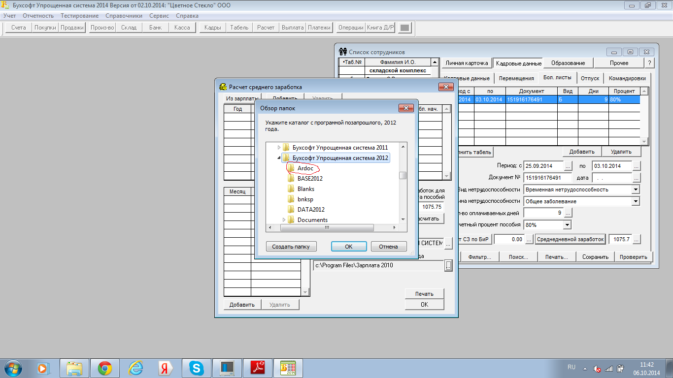 При автоматическом вводе данных для расчета среднедневного не вижу в нужном месте папку Зарплата за позапрошлый год. Сервис-путь к программам в какой папке искать зарплату за 2012 год?