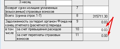Здравствуйте! При заполнении годового 4ФСС в таблице 1 по стр.9 вышла задолженность 0,03 рубля. Эта сумма встает автоматически по стр.10 (за счет превышения расходов), а мне нужно, чтобы она стояла по стр.11 (за счет страховых взносов). Как это можно поправить?