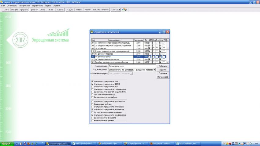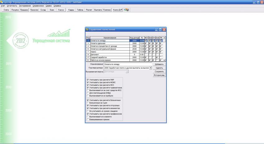 Справочник начислений выглядит так: